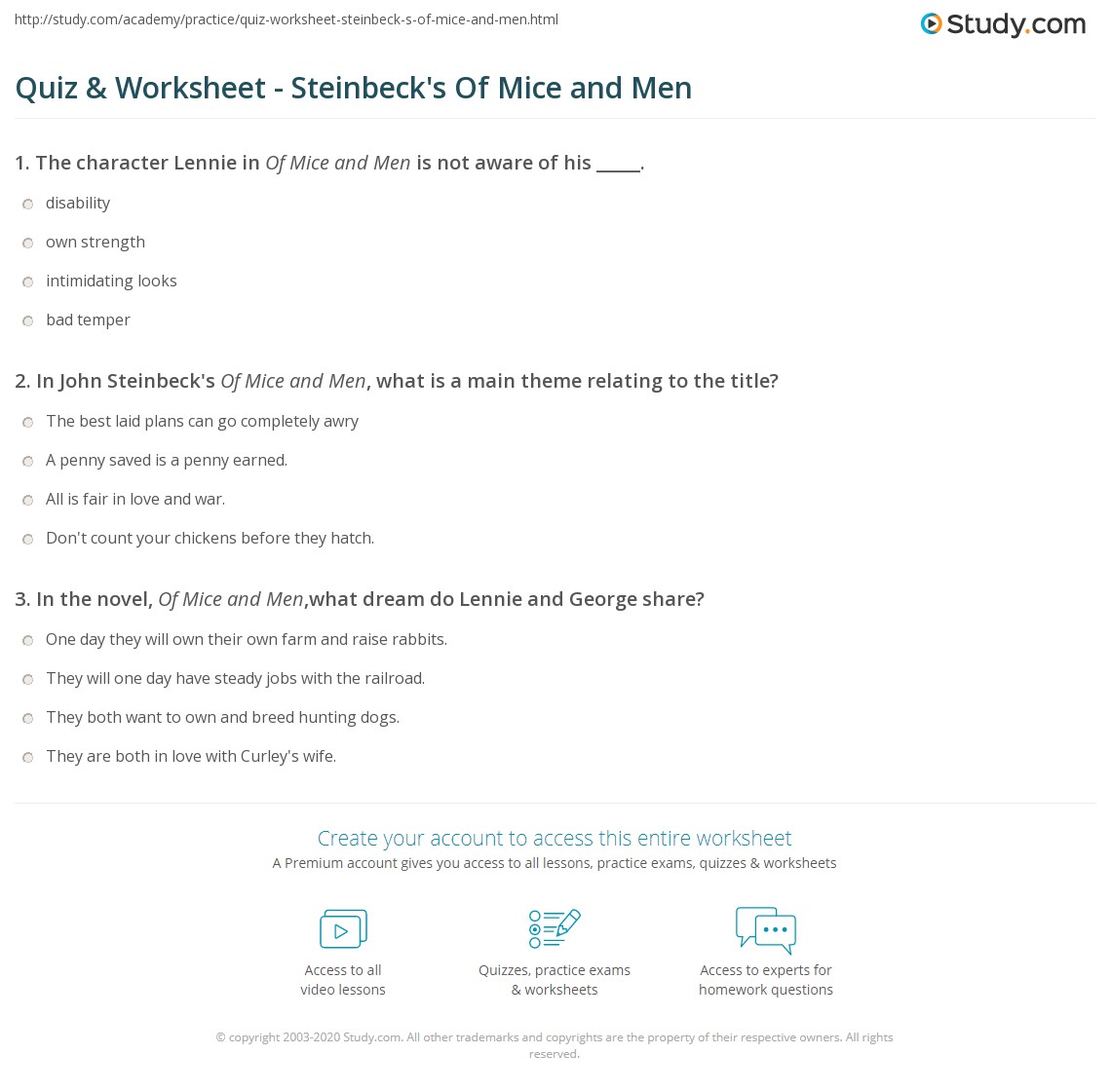 Of Mice And Men Worksheets : 2 /. We may earn a commission through links on our site. By exploring themes such as the nature of dreams, the relationship between s. Introduction to the of mice and men characters, with descriptions and analysis of their roles in john steinbeck's classic novella. The most promising longevity research indicates that severe calorie restriction might extend life s. The office of the associate director for science (oads) provides cdc/atsdr with scientific vision, advice and leadership in promoting the quality and integrity of cdc science, and is an advocate for the application of science to solve impor.
